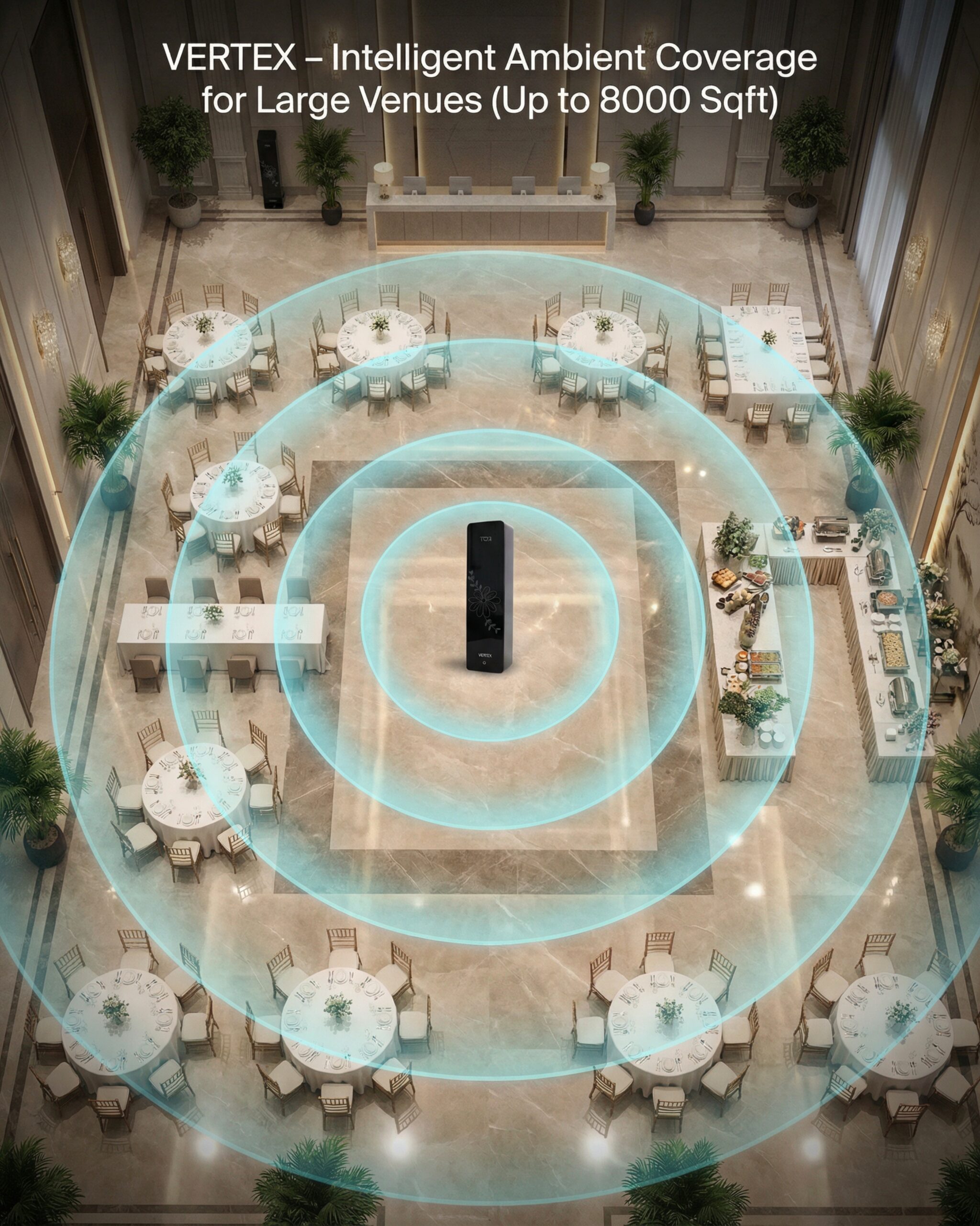 With its long-lasting diffusion and odor-neutralizing properties, Vertex Tower is ideal for transforming everyday environments into refined and welcoming spaces.